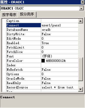 ORADC1的Connect属性:user1/pass1