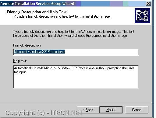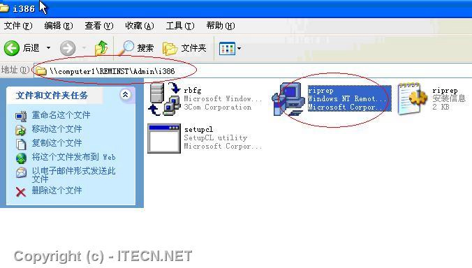 ( 3 )在基准计算机上,用 \\risservername\RemoteInstall\Admin\i386 <file://risservername/RemoteInstall/Admin/i386> 连接到远程安装服务器。运行 riprep 。上传基准机的磁盘镜像。