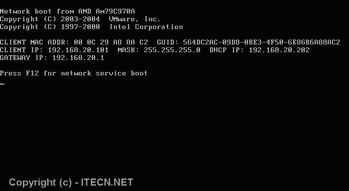 ( 2 )重新启动计算机后,在启动引导阶段,按下 f12 键,出现网络引导界面,观察该计算机已经获得了地址。