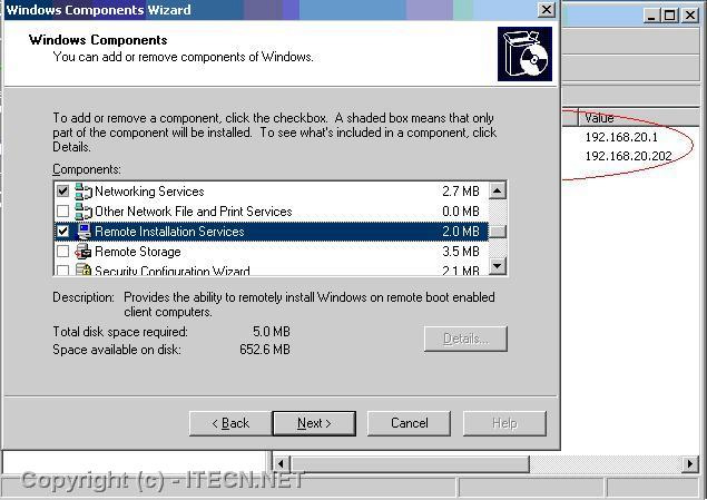 在 " 控制面板 " , " 添加删除程序 " 中,选择 " 添加删除 windows 组件 " ,选择安装 RIS 服务。见下图