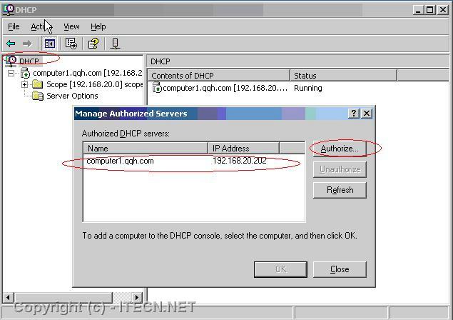 在 windows 2000/2003 中授权 DHCP 服务器使其工作。设定一个地址池,设置 DNS 等 option 的设置